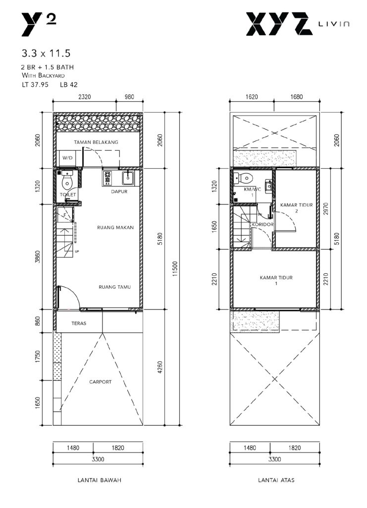 2 lantai | Dimensi : 3,3m x 11,5m